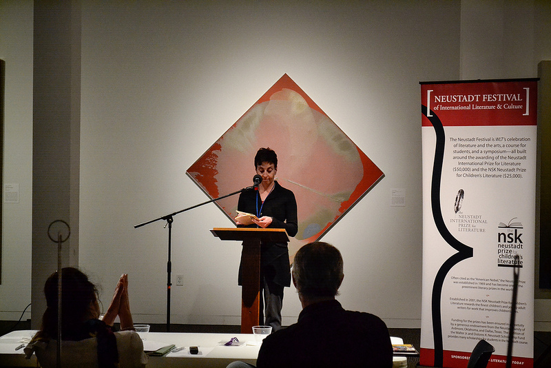 At opening night, the festival ignited with a celebration of poetry in all its forms. Two Norman high school students recited their favorite poems for our Poetry Out Loud competition, which sends students from across the country to compete in local, regional, and national poetry competitions. Ken Hada, Nathan Brown, and Ibtisam Barakat judged the competition, with WLT editor in chief Daniel Simon presiding as moderator.