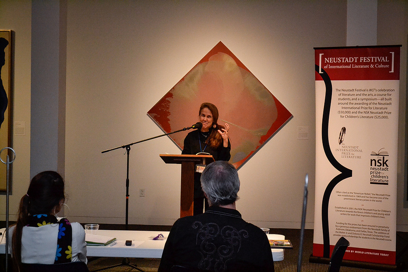 The Neustadt Festival 2013 has officially begun! Ananda Devi regaled an overflowing room of students with stories of language, writing, and identity in the first Neustadt event of the week. Devi speaks over five languages fluently, and students were eager to ask her questions about her writing and learning process.